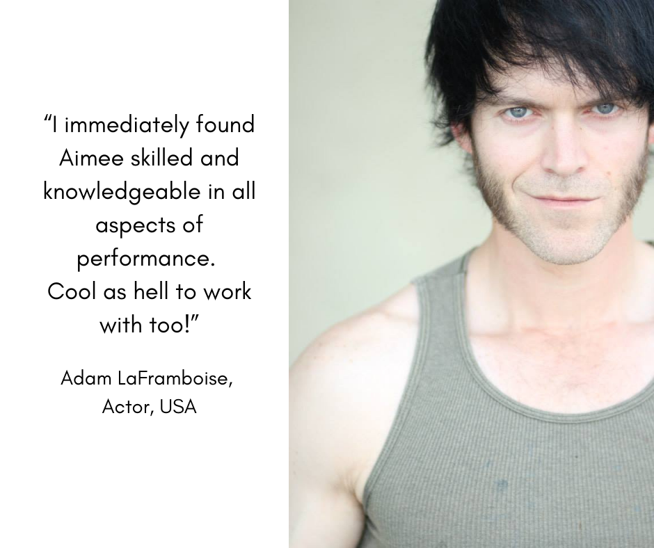 Whether performing outdoors in summer Shakespeare or in black box studios, Aimee’s work is grounded, vocally alive, and fearless in its pursuit of human truth and dynamic expression.
